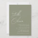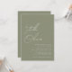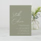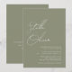 Modern elegant minimal och enkel sagesgrön kalligrafiskrift namn i modern typografi bröllopsinbjudan med QR-kod på baksidan av inbjudan.