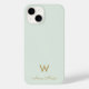 En modern, elegant monogramdesign med guld handskriven minimalistisk skrifttypografi och sans serif blocktypografi på en elegant blek pastell Saggrön bakgrund. Monogrammet och namnet kan enkelt anpassas.