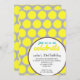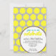 Moderna Ikat inspirerade mönster med grå färgbakgrund, och ljus gult cirklar. Din information om party som är skriftlig i finare, modernt typsnitt. Mycket flickaktigt och färgrikt