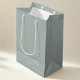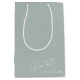 Specialdesignad brudtärna presentpåse med modern minimalistisk salvia grön och vit design.