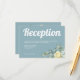 Elegant, romantisk och samtida bröllopsmottagning inneslutande kort med en klassisk gul rosor akvarell illustration i ett hörn över en enkel dammig blå bakgrund. Lätt att lägga till detaljer om mottagningen, vägbeskrivningar eller annan information.