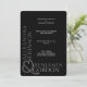 Den svarta bakgrunden och den samtida typografitrenderingen som används för denna minimalistiska bröllopsinbjudan fångar både bokälskare och moderna designentusiastiers uppmärksamhet.