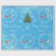 Elegant och söt personlig julomslag pappra med jultomten i sin själ som dras av en enhörning, olika snöflingor och Julafton träd som dekoreras med silver baubles. Perfekt för små barn, särskilt små flickor som gillar unicorns. Med hälsning "God jul / Emma!" i kursivt skript / kalligrafi. Se till att du anpassar namn. På blå bakgrund.