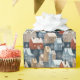 Modern Scandi Winter Town Houses Mönster Blue Red Presentpapper