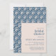 Detta moderna botaniska inbjudningskort för möhippan har en minimalistisk sammansättning och enkel typografi i blått och vitt med ett snyggt blommönster.