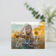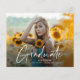 En Modern Script 2 Foto Examen Fest Inbjudan med handskriven teckensnitt full bleed horisontell bild på framsidan med namn och examensdetaljer. Baksidan har en andra bild och ytterligare festdetaljer. Klicka på redigeringsknappen för att anpassa denna design.