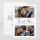 Script 3 foto bröllop elegant stilren modern tackkort. Del av en bröllopssamling. Färgerna kan ändras. Baksidan innehåller ett tackmeddelande som du kan anpassa för varje gäst eller ta bort om du föredrar att skriva ditt tack för hand. Klicka på redigeringsknappen för att anpassa.