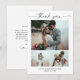 Ett Modern Script 3 Foto Bröllop Tacksamhetskort med en enkel modern layout med minimal fotokollage och typografi på framsidan. Baksidan hade ett personligt meddelande från paret. Klicka på knappen för att anpassa denna design med dina foton och detaljer.