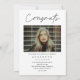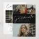 Denna moderna, eleganta och stilrena examensannonserbjudande kombination har en graverad examenkandidat och anpassningsbart namn, skola och tre foto collage på framsidan. Baksidan har gratulationer och evenemangsinformation med ett extra foto. Ett bra sätt att visa upp din examen.