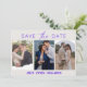 Modern Script 3-fotomallar sparar datumet. Det här moderna skript 3-fotomallarna sparar datumkortet som perfekt för ett minimalistiskt bröllop. Den enkla svarta och benvita designen har en unik industriell stil med den moderna stil. Anpassade i alla färg. Behålla designen minimal och elegant, som den är, eller anpassa den genom att lägga till ett eget foto och text.