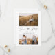 Modern Script 3-fotokort för Bröllop spara datum. Baksidan innehåller ytterligare information. Klicka på redigeringsknappen om du vill anpassa designen med dina foton och med information om bröllop.