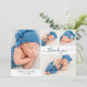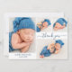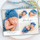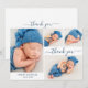 Modern Elegant Calligraphy Script 4 Photo Collage Pojke - tackkort. Med ett vackert handskrivet kalligrafi tackar du för att du har bytt ut svan-typsskript och ditt personliga meddelande. Underbar för pojke eller flicka. Enkel att anpassa med foton och detaljer från baby.