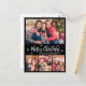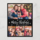 Budget, Elegant, Modern, Snowflake 4 Photo Collage God jul Script Black Helgdag-vykort. Den här festiva, imimalistiska, vimistiska 4 (4) fotokortsmallen innehåller en söt fotokollage, en snöflake och säger God jul! Texten "God jul" hälsning är skriven med ett vackert, vitt, färg-handskrivet typsnitt på svart bakgrund. Söt hälsning vykort till din familj och dina vänner under denna jul och Julhelg.