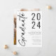Detta är ett modernt tillkännagivande från studenten i elegant och snyggt. Det är ett enkelt handskrivet skript i klassisk svart och vit med "Klass 2024" med fet stil. Det finns också ett foto på baksidan. Kontakta designern om du vill ha några frågor om den här designen.