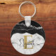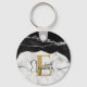 Modern Script Black White Marble Guld Monogrammed Nyckelring