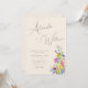 Den här moderna bröllopsinbjudan för boho-blommigten har en minimalistisk design som är fokuserad på namnen av bruden och brudgummen i ett känsligt, finstilt typsnitt. Den har en bukett med färgstarka vattenfärgade vilda blommor och en beige bakgrund. Kolla in samlingen för resten av matchande bröllopsinbjudningssvit och fler matchande produkter.