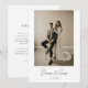 Modern Script Bride & Groom Names Wedding Photo Thank You Card. Personalize this black and white, minimalistic and elegant wedding thank you card with your wedding date, bride and groom names, a favorite wedding photo, and your custom message on the back.