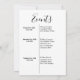 Detta bröllops itinerarkort och välkomstmeddelande. Det är ett modernt script-teckensnitt med enkelhet och elegans. Dess traditionella svart-vita färgkombination gör det till ett bra komplement till alla evenemang. Denna välkomstkorts skript är helt modifierbart.