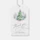 Personalized Christmas gift tags feature watercolor pine tree and elegant Merriest Christmas script in sage green, modern and simple. Custom your own family name.