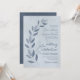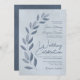 Bröllopbjudan har en modern utformning med högernas rättfärdigade text och en nyans av handmålat löv i stålblå och pewter. Skriptet har ett modernt skript och den marmorerade dammiga blå bakgrunden lägger till struktur och djup. Den här inbjudan är enkel, rustik, unik och chic. Det är ett underbart sätt att lägga till contemporary stil till klassiskt elegans.