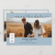 Den här dammiga blå besparingen av datumkortet kombinerar tidlös charm med en ny modern design. Den översta texten innehåller "Spara datum" i skript för elegant, följt av ett stort par foto med en svart datumruta för ett fet påstående. Namn, bröllop och en enkel skriptanteckning är väl placerade nedan och skapar ett polerat och förfinat utseende. Perfekt för vinter, kust eller klassisk bröllop.