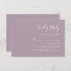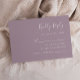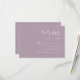 Det här enkla, moderna kortet för inneslutning i bröllop OSA har vit text på en dammig lavendelbakgrund. Rubriken visas i snyggtens handskriftsgrafi. Anpassa återstående text i sans serif-teckensnitt. Den omvända sidan är solid dammig lavender.