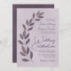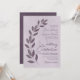 Den här bröllopsinbjudan har en modern utformning med högernas rättfärdigade text och en sprit av handmålat löv i lyxskuggor och plommon. Skriptet har ett modernt skriptteckensnitt och den marmorerade dammiga lilan-bakgrunden lägger till struktur och djup. Den här inbjudan är enkel, rustik, unik och chic. Det är ett underbart sätt att lägga till contemporary stil till klassiskt elegans.