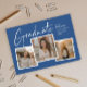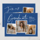 En modern script examen fotokollage utexaminerad inbjudan med handskriven stil och 3 bilder på framsidan med namn och examensdetaljer. Baksidan har 2 bilder och festdetaljer. Klicka på redigeringsknappen för att anpassa denna design.