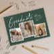 En Modern Script Examen Fotos Kollage Examen Inbjudan med handskriven teckensnitt och 3 foton på framsidan med namn och examensdetaljer. Baksidan har 2 foton och festdetaljer. Klicka på redigeringsknappen för att anpassa denna design.
