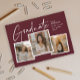 En Modern Script Examen Fotos Kollage Examen Inbjudan med handskriven teckensnitt och 3 foton på framsidan med namn och examensdetaljer. Baksidan har 2 foton och festdetaljer. Klicka på redigeringsknappen för att anpassa denna design.