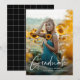 Ett modernt manus för examen Enkel examensannonseringskort med handskriven typsnitt full bleed porträttfoto på framsidan med namn och examensinformation. Modern svart-vit rutigt bakstycke. Klicka på redigeringsknappen för att anpassa denna design.