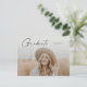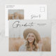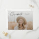 Modern Script Examenfoto Examenfirande Inbjudan. Färgerna kan ändras. Baksidan innehåller ytterligare detaljer och ett andra foto. Klicka på redigeringsknappen för att anpassa denna design med dina foton och text.