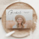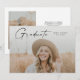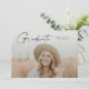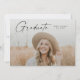 Modern Script Examenfoto Examenfirande Inbjudan. Färgerna kan ändras. Baksidan innehåller ytterligare detaljer och ett andra foto. Klicka på redigeringsknappen för att anpassa denna design med dina foton och text.