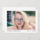 Modern Script examensmeddelande med foto, öppet hus-inbjudan på baksidan