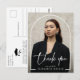 Uttryck tacksamhet med stil med det moderna skriptkortet Foto Båge Examens Tack Postkort. Med en elegant skriptfont och en unik båge-fotoutformning är detta postkort det perfekta sättet att tacka familj och vänner för deras stöd. En vacker souvenir för att fira denna speciella milstolpe.