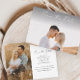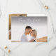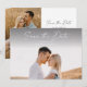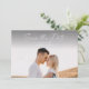 Modern Script Foto Bröllop Spara datum-kort. Baksidan innehåller ett andra foto med ytterligare detaljer. Klicka på redigeringsknappen för att anpassa denna design med dina foton och bröllopsdetaljer.