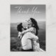 Script foto bröllop elegant stilren modern tackkort. På baksidan finns ett tackmeddelande som du kan anpassa för varje gäst eller ta bort om du hellre vill skriva ditt tack för hand.