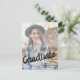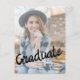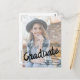 A Modern Script Graduate Simple Photo Graduation Invitation postcard with handwritten font full bleed portrait photo on the front with name and graduation details. The back has a second photo with additional details. Click the edit button to customize this design.