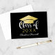 Anpassningsbar studenten tackkort-kort har en svart bakgrund (kan anpassas) med snyggt och trendig guld och vit kalligrafi-skript med graderingshölje och student namn i modernt skript.