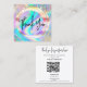 say big thank you and show your love and customer appreciation with this modern script card with the heart and holographic background, inviting them to purchase again, leave a review and tag you on social media. You can change the colors of the heart, text and icons to fit your branding