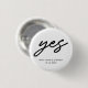 Modern Script Ja Förlovning Bröllops Knappar för dina bröllopsgäster, personliga i svart och vitt. Alla färger kan ändras!