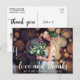 Modernt manus Kärlek och tack Bröllopspar Fototackkort
