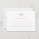 Dessa elegant, minimalistiska bröllop-svarskort har modern skripttypografi och ren, sans serif-text för en enkel och snyggt lavender lätt lila och vit design som du ska kärlek. Det finns utrymme att räkna upp dina alternativ för gästernas val av middag eller entré på OSA kort för val av bröllop-måltid.