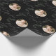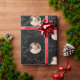 Christmas gift wrapping paper feature modern Merriest Christmas script and pine tips, with personalized family name and two photos in sage green, black and white. simple and elegant.