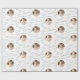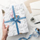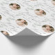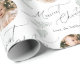 Christmas gift wrapping paper feature modern Merriest Christmas script and pine tips, with personalized family name and two photos in sage green, black and white. simple and elegant.