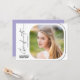 Denna moderna examensfestinbjudan med scriptstil har en minimalistisk design med handskrivna texter på vit bakgrund. Baksidan erbjuder anpassad text för att du ska kunna lägga till dina festdetaljer på en ljuslila bakgrund.
