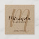 Modern Script Monogram och Namn Kraft Papper Fyrkantigt Visitkort