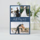 Modern Script Navy 3 Photo Collage Bröllop Tack Kort