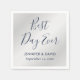 Enkla, men ändå elegant marinblåa och pappra blöjor från silver bröllop med ett modernt typsnitt. Bästa dagen någonsin bröllop-servetter. Matchande objekt är tillgängliga.