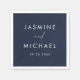 Lägg till en personlig till din bröllopsmottagning, förlovningsfest eller repetitionsmiddag med den här personligen moderna manusservetter från bröllop. Visningen personligt bröllp napkins i namn och bröllop daterade i modern skrift med ett vitt handskript på marinbakgrunden. Den enkla, men ändå snyggt, marinens bröllop-blöjor är perfekt för ert moderna bröllop.